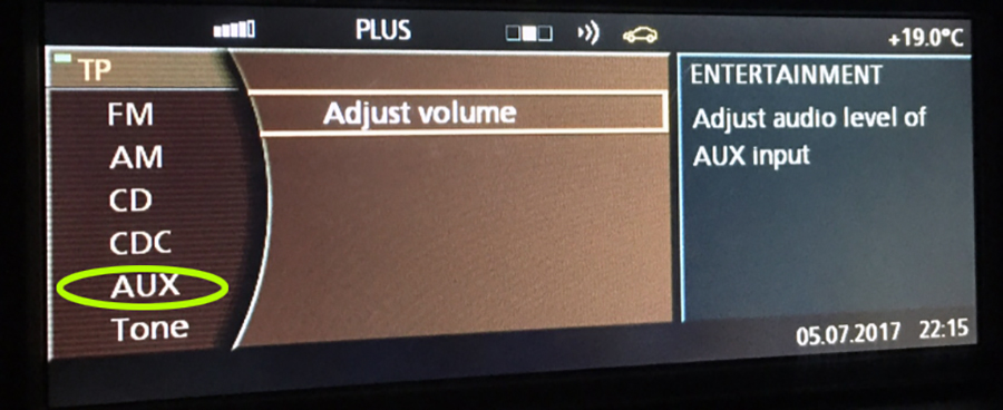 CD/Entertainment/External devices/External audio input (AUX front)/activate.