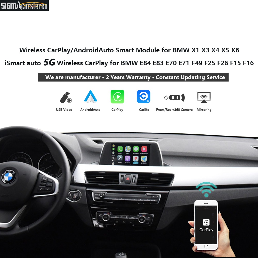 BMW x1 x3 x4 x5 x6 e84 e83 e70 e71 f49 f25 f26 f15 f16 1-1 Wireless CarPlay AndroidAuto Smart Module Plug and play, no coding required no wire cutting needed. Use wireless carplay and Android auto on your original screen. No need to change the screen.
