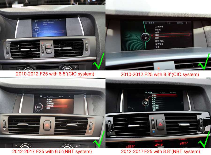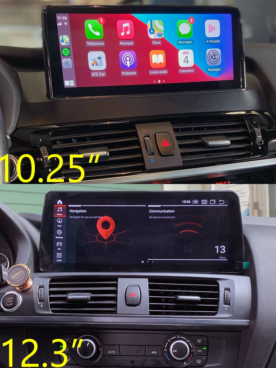 Aftermarket GPS Navigation Head Unit is specially designed to upgrade BMW X3(F25)/X4(F26) 2010-2017 factory LCD screen unit(or storage box on the dashboard). It has the same plug and harness as the factory head unit, which is plug-and-play. This head unit only replaces the original LCD screen unit and retains the factory FM/CD unit, so the original BMW car computer/CD/FM/AM/Sirius/XM will still work as before.
