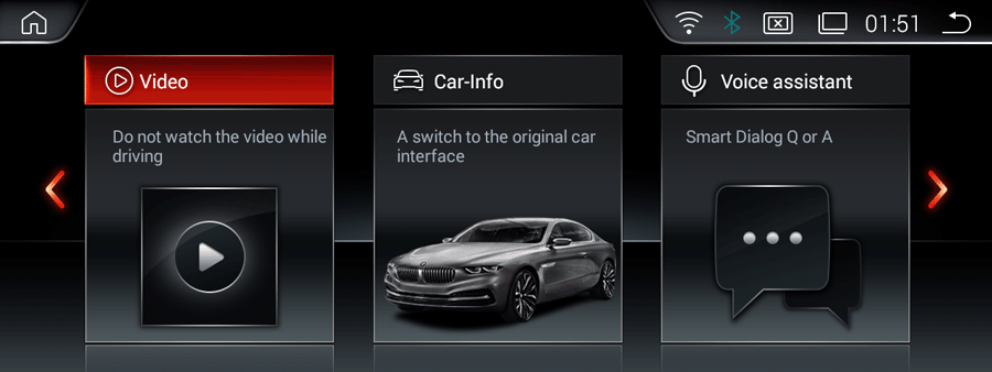 Answer: Please tap “Car-info” icon on the home screen OR long press (3 seconds) MENU button on iDrive to switch to original CIC/NBT interface.