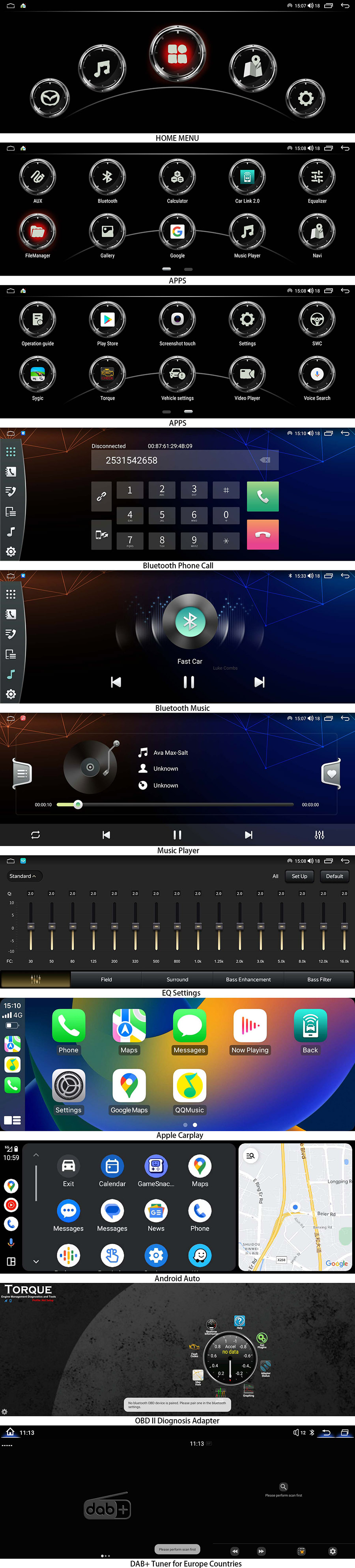 2. This product retains ALL the Mazda OEM radio system, including the BOSE sound system, factory backup camera, etc. It works like the Audi/BMW/Mercedes large-screen system.