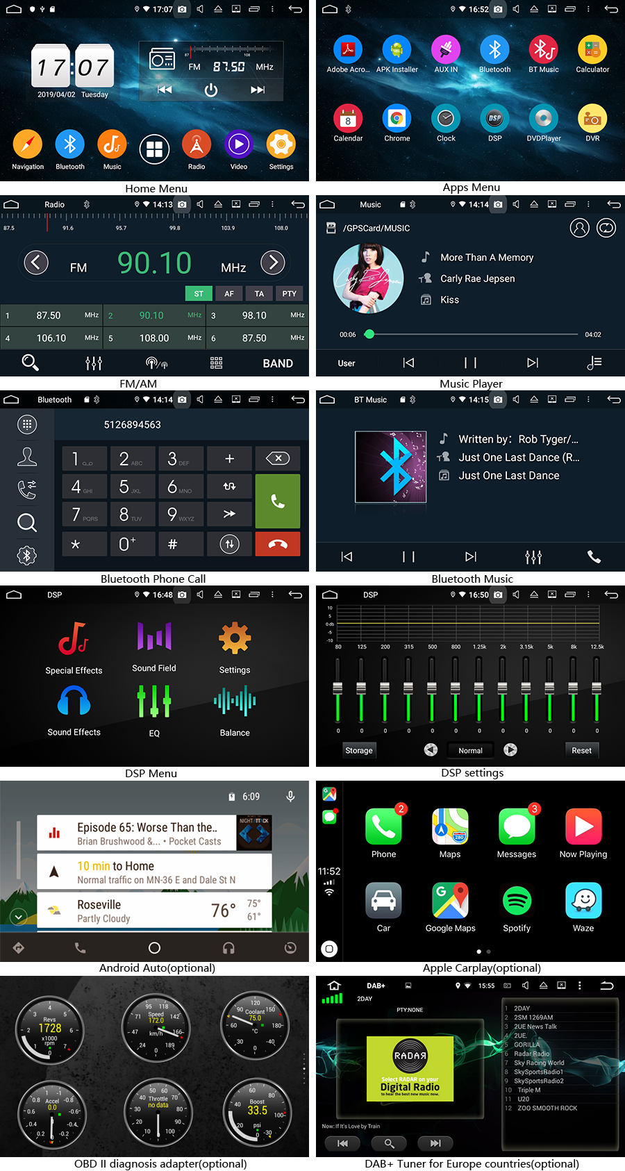 | Audio Output | Front Left, Front Right, Rear Left, Rear Right and Subwoofer(RCA port) | |